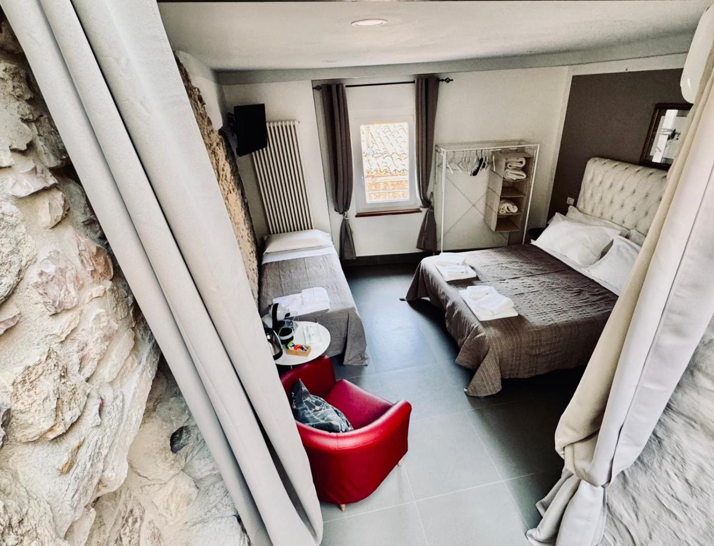 Camera Deluxe (2 Adulti + 1 Bambino). Featuring free toiletries, this double room includes a private bathroom with a shower, a bidet and a hairdryer. This double room has air conditioning, a private entrance, flat-screen TV, as well as winechampagne for guests. The unit has 2 beds. ;